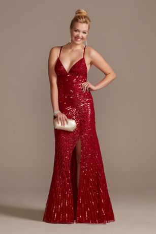 Crossing Sequin Sheath Dress With Slit David S Bridal